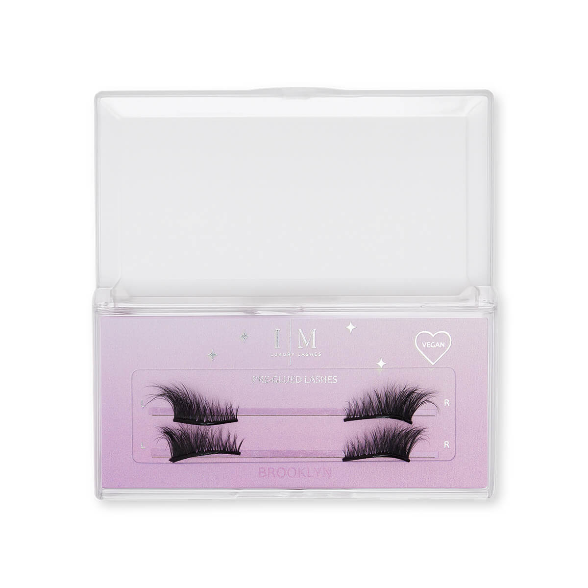Η συσκευασία των PREGLUED HALF LASHES περιέχουν 2 σετ μισών βλεφαρίδων, οι οποίες είναι προκολλημένες και έτοιμες για εφαρμογή – κάνοντας την εφαρμογή εξαιρετικά εύκολη. Η συσκευασία θα σας παρέχει 2 φρέσκα σετ βλεφαρίδων. Τα μήκη ποικίλλουν σε όλη τη βλεφαρίδα από 10-14 χιλιοστά.